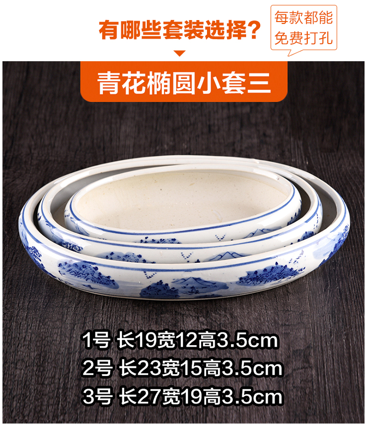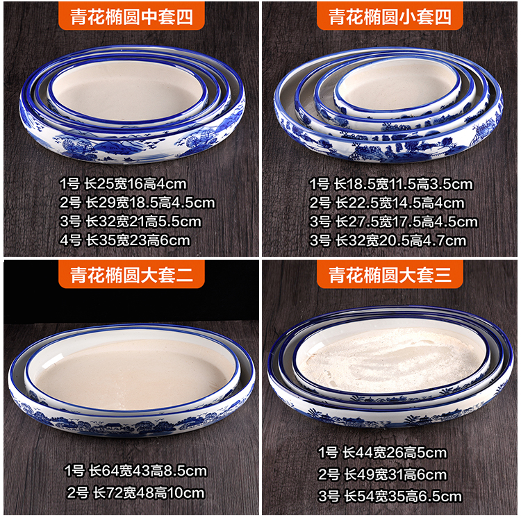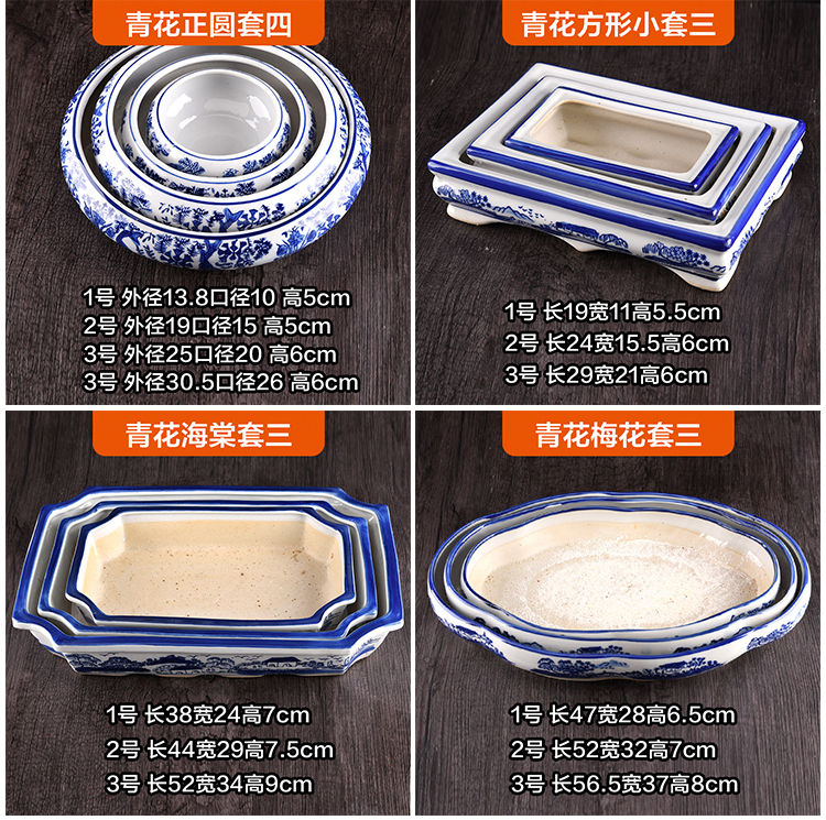 假山盆景青花瓷盆套裝