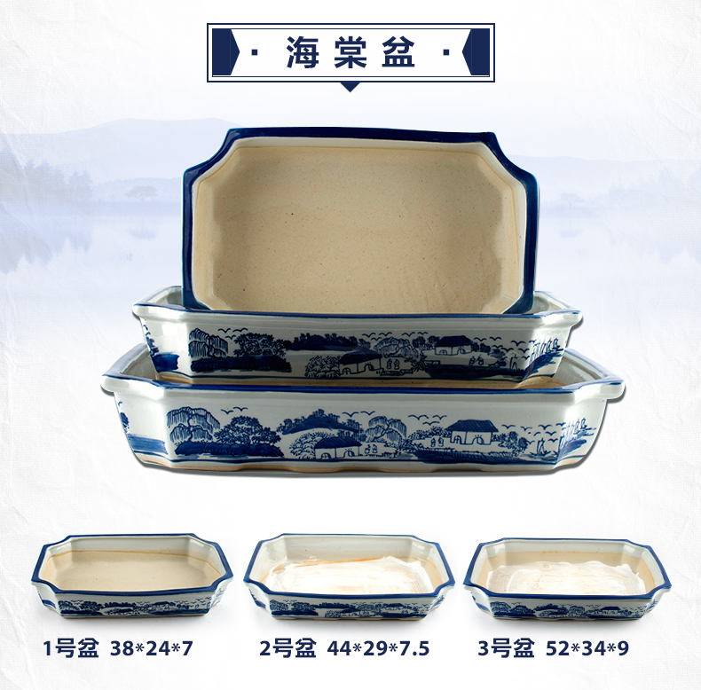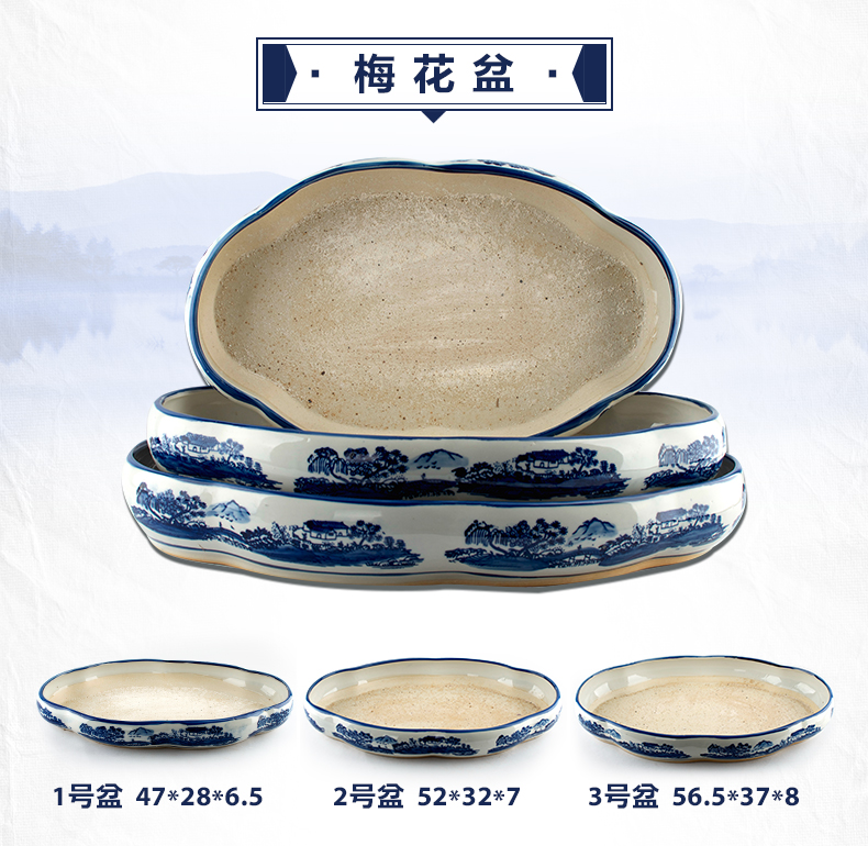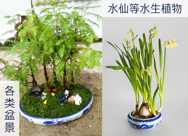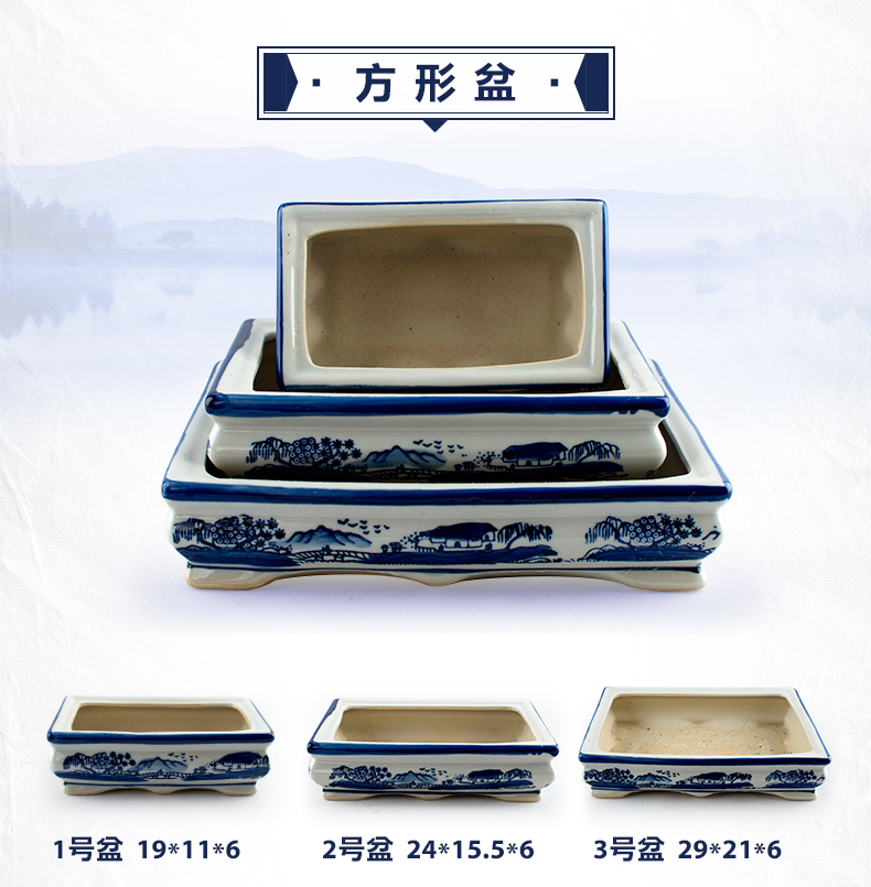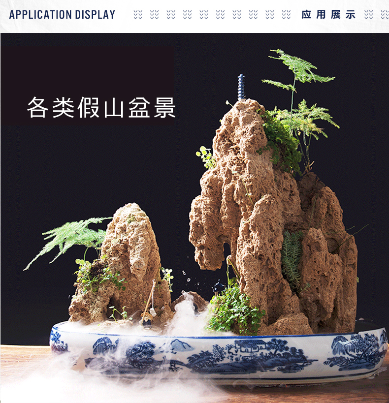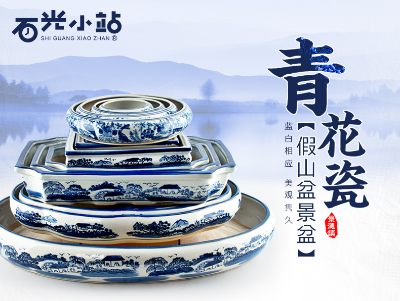 青花瓷假山盆景盆
